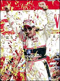 |  | | Dale Earnhardt is showered with confetti after winnning the Winston 500. |