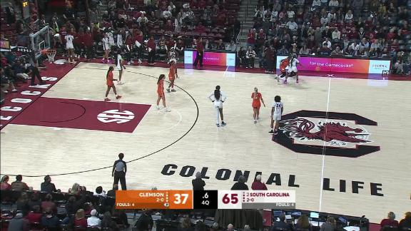 Edwards scores 18 to lead No. 2 South Carolina past Clemson 65-37 for 15th straight win in series