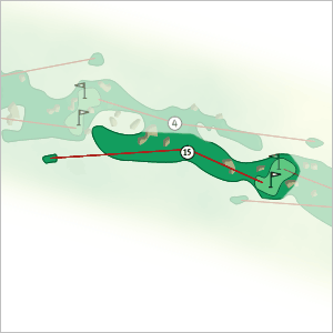 The skinny: Drive should be aimed at the church steeple between two hillocks. Open second shot to a sloping green, but should be a high ball to avoid humps and bumps in front of the green.