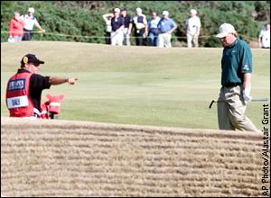 | Daly dose John Daly is given assistance from his caddy to find his ball after a wayward drive on the 14th hole. The 1995 British Open championsip shot a 4-over 76.