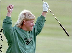 | Long John John Daly raises his arms in triumph after winning a four-hole playoff with Costantino Rocca at the 1995 British Open, the last time it was held at St. Andrews. It was Daly's second major championship, but he hasn't won anything since.