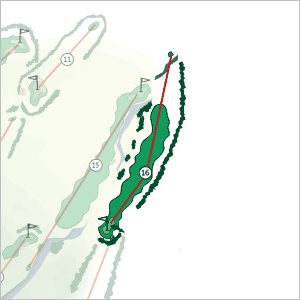 No bunkers on this dogleg right, just a tight, tree-lined fairway and plenty of rough. Brush Run goes down the entire right side of the hole. Hourglass green is narrow and elevated. Bluegrass-covered slopes border the green.