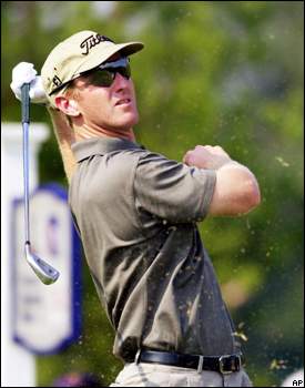| Ahead with 7-under par A divet kicks up as David Duval watches his shot from the second tee during second round play of The Tour Championship at East Lake Golf Club in Atlanta, Ga., Friday, Nov. 3, 2000. Duval finished the round in the lead with a 7-under-par 133 for the tournament.