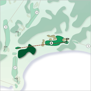 down the right side, a bunker left and a 30-foot drop to a canyon