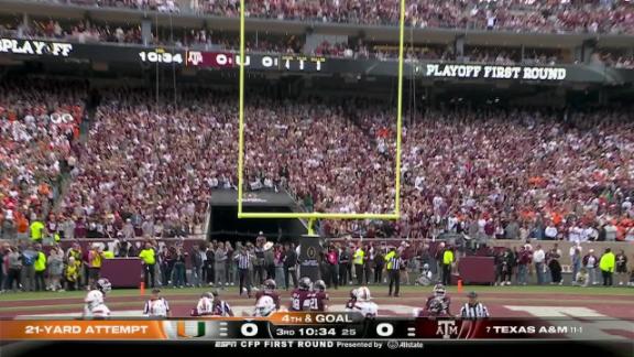Miami's Rueben Bain Jr. blocks Texas A&M FG attempt