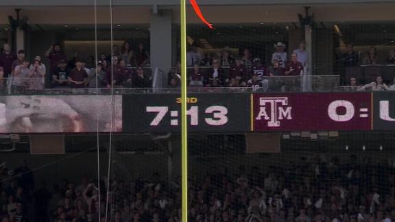 Rueben Bain Jr. gets his hand up to block Texas A&M's Jared Zirkel's kick to keep the score 0-0 in the 2nd quarter.
