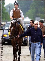 They said it: Campbell on whether the Derby has lost its luster: "No way, I think it's more special. There's more to it now, and it seems to be hotter than ever with all the media here and the amount that's televised. NTRA and its promotion has been a big key. So has the near misses in the Triple Crown of late. There'll always be magic in the name Derby, alone. It's like saying the World Series or the Super Bowl." Trainer Bobby Frankel (Aptitude) on which horses are the ones he is worried about: "The favorite (Fusaichi Pegasus) and Captain Steve." Everybody's favorite 88-year-old, Harold Rose, on his decision to simply walk the shedrow with Hal's Hope on Derby Eve and the morning of the race: "If he isn't fit now, he'll never be." |