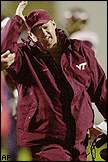 The details are a bit sketchy, but apparently the man suffered some type of seizure, causing him to gun his SUV into the nearly deserted marina area of the lake. Franks, along with Duke equipment manager Mike Hawley, just happened to hear the splash and took action. "It was just a matter of being in the right place at the right time," Franks told reporters. About that being in the right place stuff. . . Northwestern, which won or shared three Big Ten championships in the '90s, is the owner of the all-time longest losing streak (34) in D-IA history. Virginia, which the Dookies play this Saturday, is tied for second (28). . . with Kansas State. Tied for sixth is South Carolina (21) and tied for seventh is none other than Florida State (20). So see? Miracles can happen. Just ask the guy who got pulled from the water by Franks. 19. "Oh, Say Can You See. . ." In light of recent events, it goes without saying that our favorites are now Conference USA, the Patriot League, the Freedom Football Conference, the Independence, Liberty and Humanitarian bowls. And, of course, our favorite D-III program is Defiance. 18. The King is Dead It's never a good thing for Florida State followers when you can't tell the difference between the Seminoles and North Carolina. But that's what happened Saturday as FSU looked surprisingly vulnerable against a Tar Heels team that began the day 0-3, but didn't end it that way. Carolina produced the upset of the infant season, but maybe the 41-9 win wasn't such of a shocker, after all. Here's why: