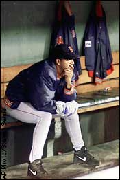 Chris Carpenter and the Toronto bullpen outpitched Martinez, who allowed a season-high seven hits and three earned runs as his major league-leading ERA rose from 0.90 to 1.19. Martinez (7-2) had not given up three earned runs in 18 starts since last Aug. 19, a span that included last year's playoffs. "I guess a lot depends on your expectations," Boston manager Jimy Williams said. "To me, he doesn't have a reason to be down; he pitched good. But he expects a lot from himself -- he always has. Maybe that's why he's at the level he is." Martinez struck out seven and walked three in eight innings. Although he sat in the dugout after the game with his arms crossed and a frown across his face, he said he wasn't upset with his performance. "I'm going to have to find out what is (wrong), but it's no big deal," he said. "Today I had a great outing. I just went out there to lose." Carpenter (4-5) was facing Martinez for the second time in six days, having lost 8-0 in his last start. The Toronto right-hander allowed two runs, six hits and five walks in 5 2/3 innings, leaving with two out and the bases loaded in the sixth; Paul Quantrill retired Jose Offerman to end the threat. Billy Koch, who wasted a ninth-inning lead Monday when Chicago's Herbert Perry hit a two-run homer, pitched the ninth for his 10th save. Tony Batista homered for the Blue Jays. "Obviously, with a 0.90 ERA, he's not going to give up many runs," Carpenter said. "When he does, you've got to take advantage, and we did that tonight." Martinez came into the game leading the AL in strikeouts and tied for the lead in wins, but he ran into trouble from the first batter. Stewart and Craig Grebeck led off the game with singles and, after Raul Mondesi grounded into a fielder's choice, Stewart came home on a wild pitch. The run was the first allowed by Martinez in 17 innings. It was also the first time he surrendered a first-inning run since last Aug. 8. Boston tied it in the bottom half when Offerman walked, took third on John Valentin's single and scored on a double play. But Martinez was in trouble again in the third. Alex Gonzalez led off with a single, took second on Stewart's single, third on Grebeck's walk and scored on Carlos Delgado's sacrifice fly. Batista hit his 12th homer leading off the fourth, ending an 0-for-13 slide and giving the Blue Jays a 3-1 lead. Boston loaded the bases off Carpenter in the sixth when Brian Daubach and Carl Everett singled and, two outs later, Jason Varitek and Donnie Sadler walked to make it 3-2. But Quantrill got Offerman to bounce the ball to first base to preserve the victory.