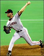 |  | | Giants starter Shawn Estes was in trouble early, then settled down, but still came away with a no-decision. |