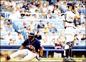 |  | | Torii Hunter scores the deciding run for the Twins in the 10th inning on Denny Hocking's single. |