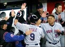 Todd Zeile's solo shot in the 10th inning gave New York a 3-2