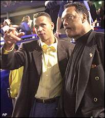 | | | Seattle Mariners shortstop Alex Rodriguez, left, speaks with the Rev. Jesse Jackson during Game 4. | Alex Rodriguez of the Seattle Mariners, who said he came to Game 4 to cheer on his friends, was only one of the famous faces seen during the Subway Series. Sex andthe City TV star Kim Cattrall was sitting in the cheap seats much to the delight of the teenage son of Steve Wulf, ESPN The Magazine executive editor. The Yankees, who brought their own furnishings to Shea for comfort, didn't exactly receive the star treatment they might have expected when their locker room accidentally flooded, forcing an evacuation after the game.