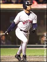 GAME 1 AT CLEVELAND Indians 3, Red Sox 2 Travis Fryman's RBI single in the bottom of the ninth inning wins the opener for Cleveland. RECAP | BOX SCORE GAME 2 AT CLEVELAND Indians 11, Red Sox 1 Jim Thome's grand slam and Charles Nagy's pitching deliver the goods. RECAP | BOX SCORE GAME 3 AT BOSTON Red Sox 9, Indians 3 Ramon Martinez pitched well for Boston and the offense also responded with nine runs. RECAP | BOX SCORE GAME 4 AT BOSTON Red Sox 23, Indians 7 Boston turned on the offense in a big way, exploding for 23 runs to even the series at 2-2. RECAP | BOX SCORE GAME 5 AT CLEVELAND Red Sox 12, Indians 8 Troy O'Leary knocked in seven runs and Pedro Martinez finished off the amazing comeback. RECAP | BOX SCORE SERIES COMPOSITE BOX SCORE | ![]() Pedro Martinez talks about his amazing comeback.wav: 60 k RealAudio: 14.4 | 28.8 | 56.6 | ||||||