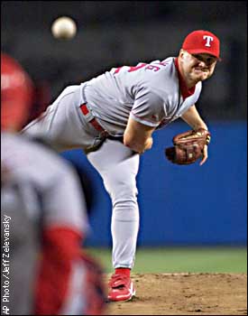 Texas Rangers pitcher Rick Helling throws a pitch during the first inning of game two of the AL division series against theYankees in New York.