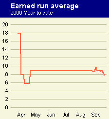 1999 Season Rookie righthander Jeremy Powell had a promising year before running out of gas in September. After being called up in July, he posted a 3.34 ERA in his first 12 starts, only to have his numbers ruined by a severe slump over the last four weeks of the season. He threw a total of 188 innings between Triple-A Ottawa and Montreal, 29.1 more than he ever had in a season, so his fatigue was understandable.