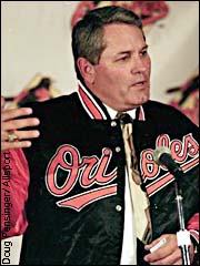 Record: 78-84, 15th overall Payroll: $75.4 million, 5th overall Runs scored: 851, 8th in AL Runs allowed: 815, 3rd in AL What went right? The pitching, overall, was surprisingly good, ranking third in the league in runs allowed. Mike Mussina was in fine form, going 18-7 with a 3.50 ERA. Scott Erickson pitched well in the second half, while youngsters Sidney Ponson and Jason Johnson showed flashes of ability. Mike Timlin had a 1.40 ERA after the All-Star break. Cal Ripken hit .340, although injuries limited him to just 86 games. A hot second half gave Albert Belle 37 homers and 117 RBI. Brady Anderson, B.J. Surhoff, and Jeff Conine put up decent numbers, though far from spectacular by current standards. What went wrong? The Orioles got off to a horrible start, burying themselves behind the Yankees by going 19-31 in the first 50 games. The bullpen blew 25 saves, which distorted the rest of the staff by increasing pressure on the starters. Baltimore actually scored 36 more runs than they allowed last year, which would normally translate into a record above .500, but a combination of bad luck, bad timing, and poor management decisions (from the top down) ruined the season. Injured vets Will Clark and Delino DeShields were major disappointments, and the team gave too many innings to washed-up pitchers like Doug Linton and Mike Fetters. In retrospect, the critical decisions were: 1. Relying on too many ancient players. Clark hasn't been healthy since Dan Quayle was a heartbeat away from the presidency, while Ray Miller seemed to revel in getting useless pitchers like Fetters, Linton, and Heathcliff Slocumb into games. Even the old guys like Anderson and Surhoff who managed to stay in the lineup and could still hit have lost a step defensively. 2. Not letting the youngsters -- or at least the right youngsters -- play. When it was obvious that the season was lost, the Orioles should have been more willing to go with youth. Instead, they let Calvin Pickering rot in Rochester or on the bench, in favor of Derrick May and Conine. On the other hand, they put Ryan Minor at third base when Ripken was injured. Minor can't hit, and unlike Pickering he isn't young enough to get much better. 3) Misunderstanding the true nature of their problems. More on that later. Looking ahead to 2000 Three key questions 1) Do all these old guys have one more good year left? 2) Will the attempt to retool the bullpen work? 3) How much of a difference will a new manager make? Can Mike Hargrove improve a sour clubhouse atmosphere? Even if he does, will this translate to wins on the field? Can expect to play better Timlin should do better now that he is adjusted to the environment. Mussina could rip off 25 wins if he gets into a groove and they score some runs for him. DeShields has come back before when no one expected it; good health will help him. Albert Belle could still hit 50 homers. Since so many of the Orioles are old, it is hard to point out someone who is a good bet to improve. Can expect to play worse Since so many of the Orioles are old, it is easy to point out someone who is a good bet to get worse. Ripken, Harold Baines, Surhoff, Clark, Anderson, Conine, and Mike Bordick are all at the point of their careers where swift, catastrophic decline can occur. Projected lineup CF Brady Anderson SS Mike Bordick LF B.J. Surhoff RF Albert Belle DH Harold Baines 1B Will Clark/Jeff Conine 3B Cal Ripken C Charles Johnson 2B Delino DeShields/Jerry Hairston Jr.