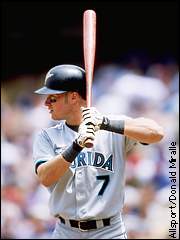 Record: 64-98, 29th overall Payroll: $14.7 million, 30th overall Runs scored: 691, 16th in NL Runs allowed: 852, 12th in NL What went right? Alex Fernandez returned from career-threatening shoulder surgery and was magnificent when he was able to pitch. Matt Mantei developed into a top closer, allowing the Marlins to cash him in for a terrific trio of prospects. Preston Wilson nearly won the Rookie of the Year award, and Alex Gonzalez was only slightly behind him. Minor league veterans Bruce Aven and Kevin Millar made solid contributions. And Luis Castillo developed into one of the game's better second basemen and leadoff hitters. What went wrong? Mike Lowell was diagnosed with testicular cancer after he was acquired from the Yankees, and missed the first half of the season. Fernandez was the only starting pitcher with an ERA below 4.50. Mark Kotsay showed little improvement from his rookie year, and Derrek Lee and Todd Dunwoody flopped. Cliff Floyd couldn't stay healthy. And neither Wilson nor Gonzalez showed much understanding of the strike zone, which may hamper their future development. In retrospect, the critical decisions were: 1. Trading Matt Mantei to Arizona. Marlins' GM Dave Dombrowski took advantage of the Diamondbacks bullpen worries during their stretch run, grabbing three outstanding prospects for the former Rule V pick. Vladimir Nunez, in his rookie season, had a 3.10 ERA out of the bullpen before moving into the rotation late in the year; Brad Penny is one of the best pitching prospects in baseball; and Abraham Nunez is a switch-hitting outfielder who hit 22 homers, stole 40 bases, and walked 86 times in A ball last year -- at the age of 19. This trade could go down as one of the building blocks of the Marlins' franchise for the next decade. 2. Acquiring Lowell from the Yankees. This trade didn't work out nearly as well for the Marlins. There was no way of anticipating Lowell's health problems before the trade, but giving up three promising arms (Ed Yarnall, Mark Johnson, and Todd Noel), two of whom were former No. 1 picks, was an awfully high price to pay for a player who was buried in Triple-A behind Scott Brosius. Yarnall (13-4, 3.47 ERA, 146 K's in 145 IP in Triple-A) would have looked very nice in the Marlins' 2000 rotation. 3. Cashing in Livan Hernandez. Hernandez, the playoff hero from 1997, was given the heaviest workload of any pitcher in baseball by Jim Leyland in 1998, and his arm hasn't been the same since. Dombrowski finally decided that it was too risky to hope for a rebound, and dealt him to the Giants for a pair of good pitching prospects (Jason Grilli and Nate Bump), giving the Marlins even more pitching prospects but leaving them with another gap in the rotation. 4. Letting Brian Daubach go. Oops. Daubach had a monster season in Triple-A in 1998 (.316, 35 homers, 45 doubles, 80 walks), but the Marlins were skeptical that his bat would handle major league pitching and were committed to Derrek Lee at first base. Daubach was picked up by the Red Sox and had a great year, while Lee ... uh ... didn't. 5. Protecting Alex Fernandez. Returning from rotator cuff surgery, Fernandez was carefully coddled by the Marlins' staff, rarely throwing more than 90 pitches in a start. This TLC paid high dividends when Fernandez put up a 3.38 ERA, which would have ranked sixth in the league if he had thrown enough innings to qualify. Looking ahead to 2000 Three key questions 1. Can the young hitters step up? On Opening Day, Lee and Kotsay will be 24, Wilson 25, Lowell 26, Gonzalez just 23. Even the "veterans" like Castillo (24) and Floyd (27) are still young. If rookie Ramon Castro (23) starts behind the plate, every hitter in the lineup will be 27 or younger. 2. Is A.J. Burnett for real? The highly-touted right-hander struggled (5.52 ERA) in Double-A all season, but when the Marlins decided to challenge him with a promotion to the majors, he clicked (4-2, 3.48 ERA). He's got the arm to be a No. 1 starter in the major leagues, but does he have the composure? 3. Can Floyd stay healthy? Can expect to play better Given how young this team is, nearly everyone. It's a miracle that Lowell was able to play as well as he did. Expect him to double his homer total (12) from last year. Kotsay is still only 24, and while his bat hasn't developed as quickly as the Marlins hoped, he's a Gold Glove-caliber right fielder and has a tremendous work ethic. A breakout season from him wouldn't be surprising. And Lee has to play better, if only because there are laws against first basemen who hit .206 with little power and a .263 OBP. Can expect to play worse Preston Wilson impressed the baseball world with 26 homers, but he struck out 156 times and was old for a rookie (he turned 25 last July). Alex Gonzalez flashed the leather at shortstop but swung at anything that came out of the pitcher's hand, including the rosin bag a couple of times (see below).