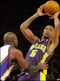 |  | | Jalen Rose put an offensive spin on a defensive battle, scoring 24 in Indiana's win over New York. |