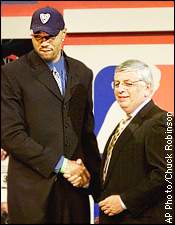 | Kenyon Martin was the first to shake David Stern's hand. |