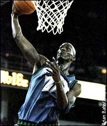 Garnett attracts defensive attention so other players are going to get good opportunities when he has the ball. He is willing to give up the ball when one of his teammates is open. Garnett needs to get consistent help from players like Terrell Brandon, Joe Smith, rookie Wally Szczerbiak, Sam Mitchell, Anthony Peeler and Malik Sealy. They are good but not great players who must perform well and be carried along with the momentum that Garnett provides.