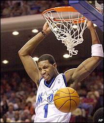 At only 21, McGrady is extremely athletic and is improving every year. His numbers have gone up every year, and they should continue to improve. He will probably finish with better than the 21.8 points per game he is averaging now. With Grant Hill out, McGrady is the Magic's main player. So he has the green light within Orlando's offense, which always gives a player great comfort.