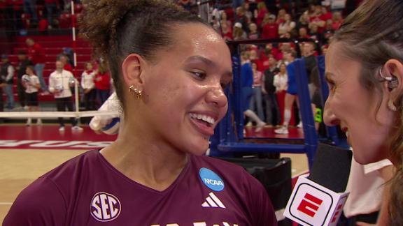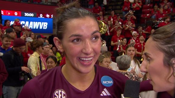 Lednicky explains how the Aggies were able to stand their ground after a slow start as she tallies 20 kills, 12 digs and seven blocks in a reverse sweep of Louisville.