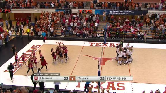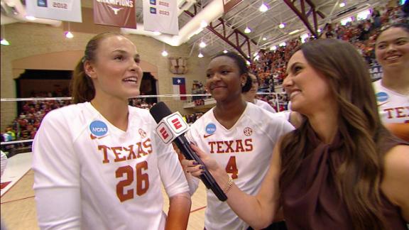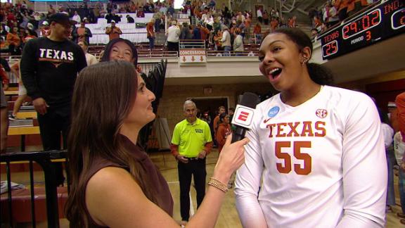 Torrey Stafford and Whitney Lauenstein recap the 1-seed Longhorns' balanced performance against the 4-seed Hoosiers and describe their excitement in moving on to the Regional Final.