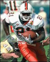 The Miami backfield. Clinton Portis scored on a 73-yard run and he and James Jackson each rushed for over 100 yards. |