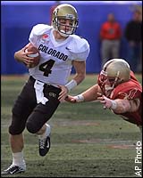 ![]() Colorado quarterback Mike Moschetti scrambles against B.C. |