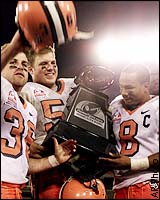 ![]() Nate Trout, Mark Baniewicz and Quinton Spotwood celebrate. |