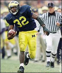 Receiver Freddie Milons will stretch the Michigan defense and open up the running game for Alexander. But one potential problem could be the absence of All-America tackle Chris Samuels, who is questionable with a sore knee. That may hurt the running attack, but it wouldn't eliminate Alexander's ability to have a strong performance.