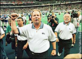 SEATTLE (AP) -- After the biggest victory of his brief $32 million coaching career with the Seattle Seahawks, Mike Holmgren was drenched in sweat and had a huge smile.