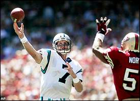 |  | | Steve Beuerlein came out blazing, leading the Panthers to a touchdown on their first possession of the game. |
