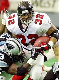 |  | | Atlanta's Jamal Anderson ran for a touchdown and had another called back against Carolina. |