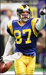 | Ricky Proehl celebrates the TD catch that saved St. Louis. | |
