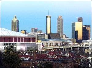 Night falls over the Georgia Dome and the city of Atlanta. The Georgia Dome is the site of Super Bowl XXXIV which will feature the St. Louis Rams against the Tennessee Titans on Sunday.