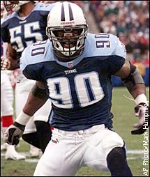Playing on the artificial surface is a plus for the Titans' speedy defensive line, and in particular Jevon Kearse (pictured above), who is already being treated like a Lawrence Taylor or a Reggie White. The Rams must know where Kearse is on every snap.