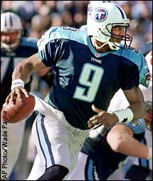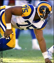 What makes Steve McNair so dangerous as a running quarterback is that he runs up the middle as well as he does outside. It's incumbent on the Rams defensive tackles, D'Marco Farr and Ray Agnew, to not just both rush up the field or there will be a hole that opens up.