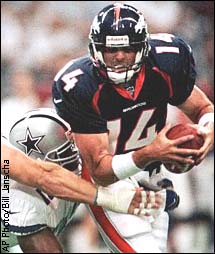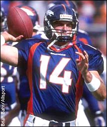 The real test will come when the Broncos are down by six with two minutes to go on the road. That's when we'll know how much they miss Elway. We don't know yet if Griese is a closer, but nobody in the history of the NFL was as good a closer as Elway. One thing is true: The team that wins the Super Bowl this year won't have an average quarterback on the field.