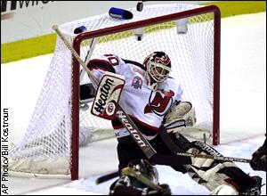 New Jersey Devils' goalie Martin Brodeur makes a save against the Dallas Stars during Game 1 of the Stanley Cup Finals in East Rutherford, N.J. ![]() |