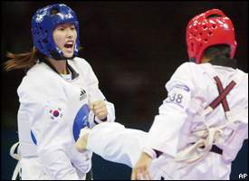 |  | | Jae-Eun Jung of Korea, left, in action against Hieu Ngan Tran of Vietnam women's 57 kg final. Tran won the silver, which gave her country its first Olympic medal ever. | But while the World Taekwondo Federation took pains to keep that