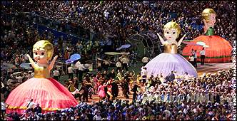 Big finish Giant dolls are wheeled through the stadium during the closing ceremony of the Sydney Olympic Games in the OIympic Stadium on Sunday.The next Summer Games will take place in Athens in 2004.