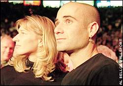 Steffi's gone from being the best player in the world to No. 1 Agassi fan. Andre's game has declined a bit, but he's not complaining. |