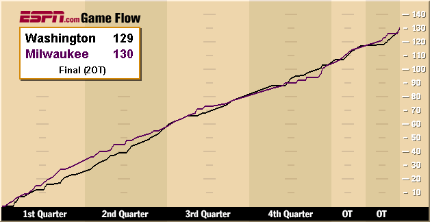 Milwaukee 130, Washington 129