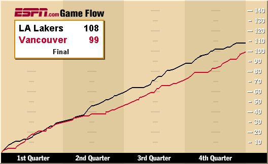 LA Lakers 108, Vancouver 99