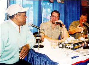 Dan Patrick makes a subtle yet heartfelt point to Willie Mays about the film career of Lauren Holly while Rob wonders who took all the baseballs.