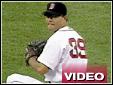 | Red Sox pitcher Bryce Florie was hit by a line drive off the bat of Yankees outfielder Ryan Thompson. |