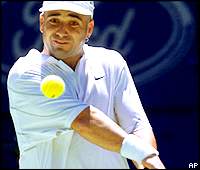 | |  American Andre Agassi is only the second man to have won three Aussie titles in the Open era. |