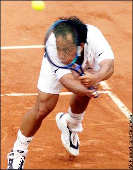 Michael Chang of the United States, dives to hit a return to Brazil's Gustavo Kuerten during their third-round match at the French Open. Kuerten defeated Chang 6-3, 6-7 (9-11), 6-1, 6-4.